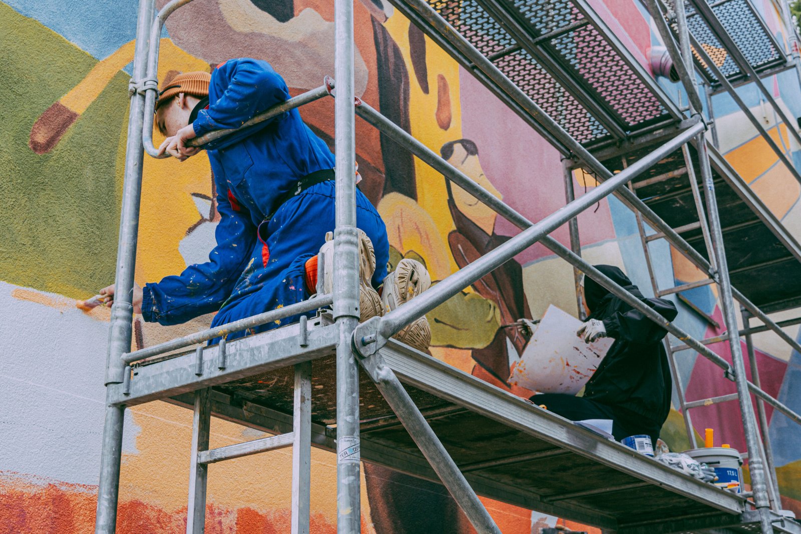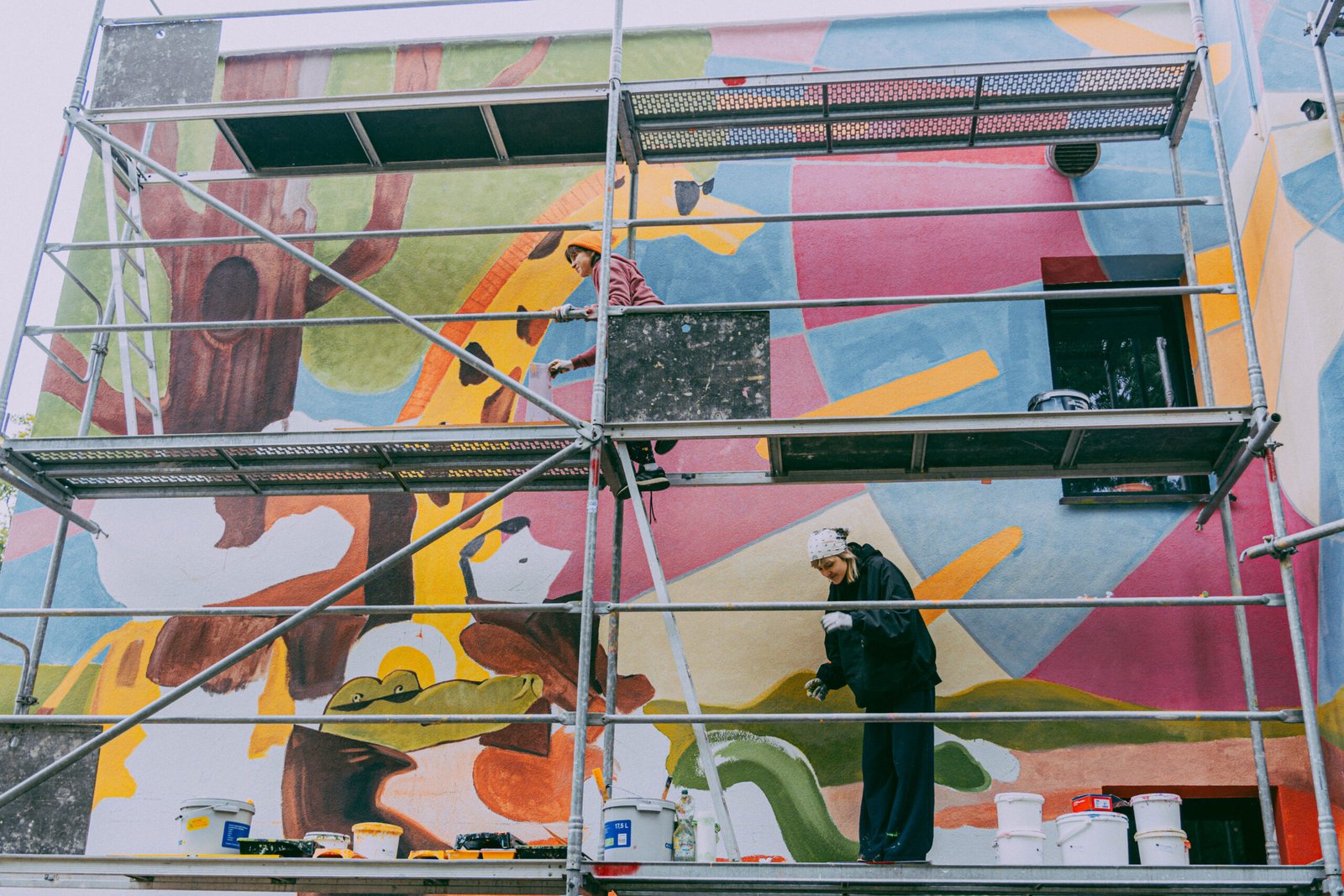 The ten-day programme combined theoretical and practical workshops focused on street art, mural painting and contemporary visual practices. Participants developed technical skills, learned how to work collectively, and gained experience in creating a shared artistic project. The programme culminated in the creation of a mural at the AGH student campus, based on a design by Anna Kliniewska and realised under the guidance of experienced mural artist Nina Dziwoki.