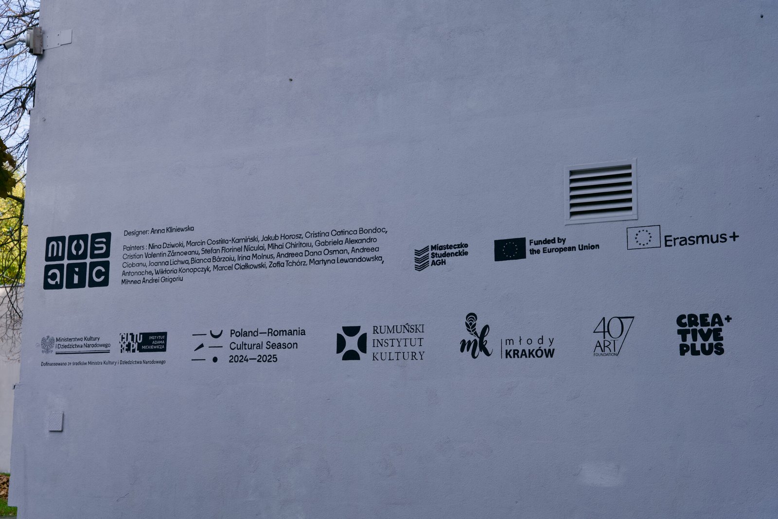 The project was organised by the Mosaic Association in cooperation with Creative Plus, which were responsible for the concept, educational programme and coordination of the international group of participants. A key role in enabling the exchange was played by 407 Art Foundation, whose support made it possible to finance the international artistic exchange and create professional conditions for artistic work in public space.